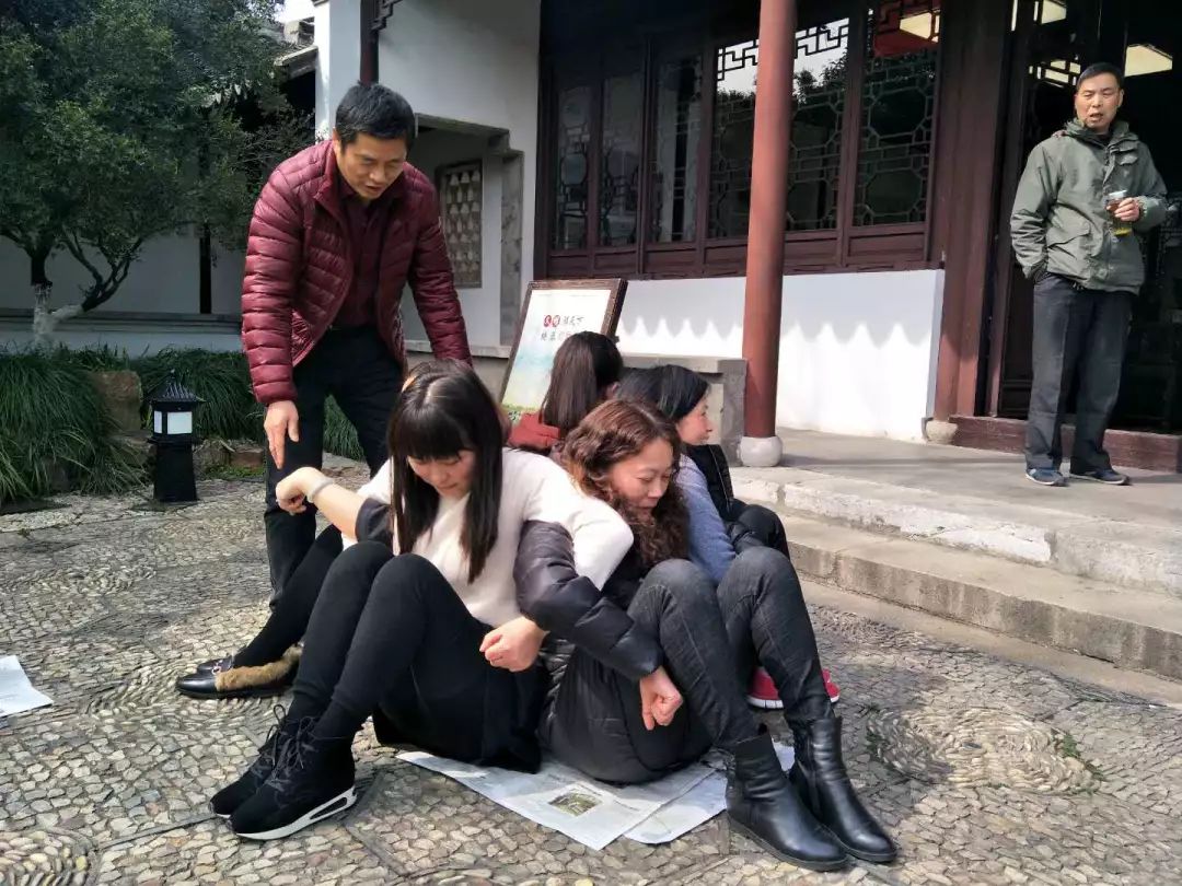 观赏结束后大家集中在五芝堂前一起体验一个名为“共同分担”的小游戏,两人一组,背对背坐在地上,手臂互扣,一起用力,互相依靠地站立起来,而后在两人合作成功的基础上,逐渐增加难度开始尝试三人、四人、五人一组的合作站立。多人游戏也更能考验大家的默契度。通过这个游戏让女职工们体会到了不论在任何时候、任何岗位,只要同心协力就没有不能战胜的困难!